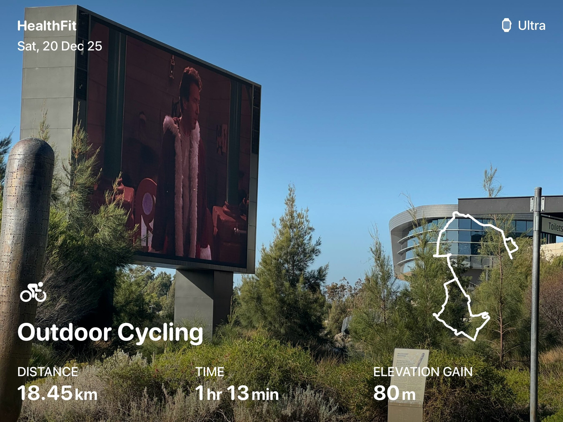 Christmas movie on the outdoor screen at Perth Stadium. 🚴