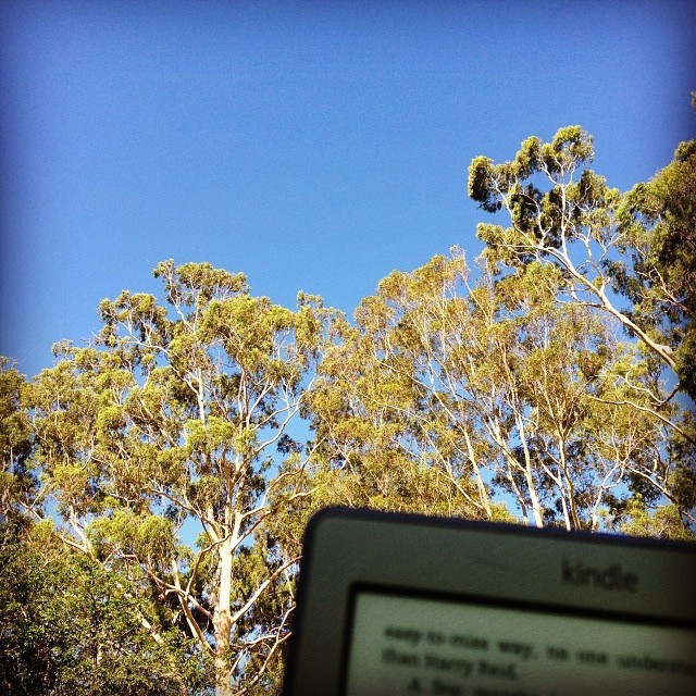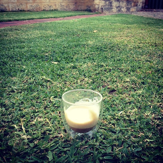 Morning coffee on the back lawn.