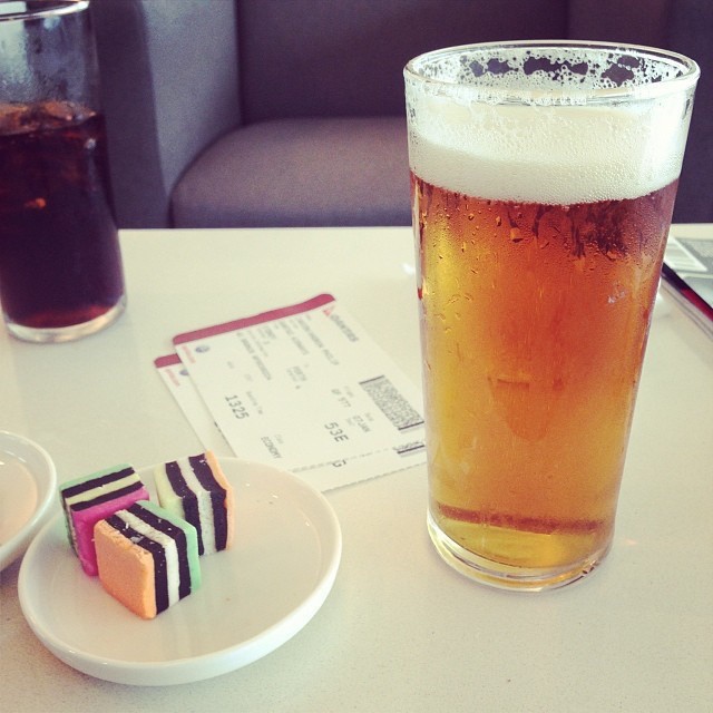 Beer and liquorice all sorts at Qantas Club Sydney. Just what is needed after 3 legs of flight with a fourth to come.