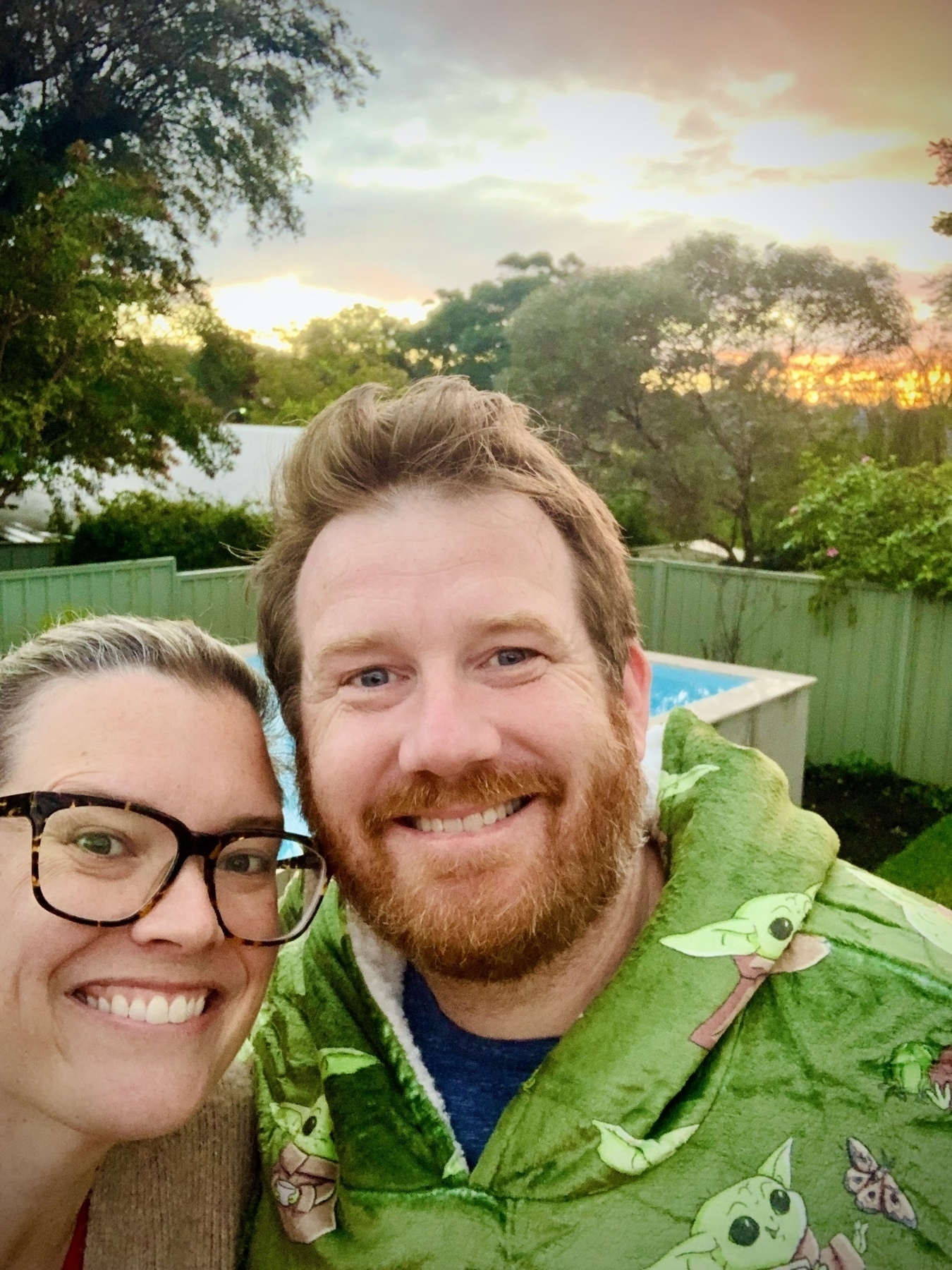 Sunset on a drizzly evening.