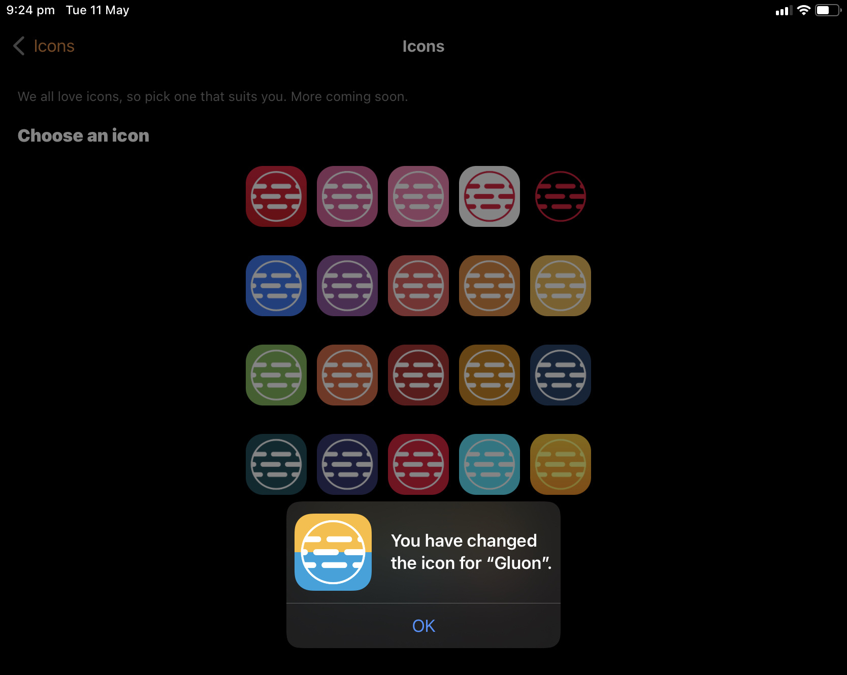 Itβs cool when you see your podcastβs colour scheme specifically made available in an app. Thanks @vincent - Gluon is the best!