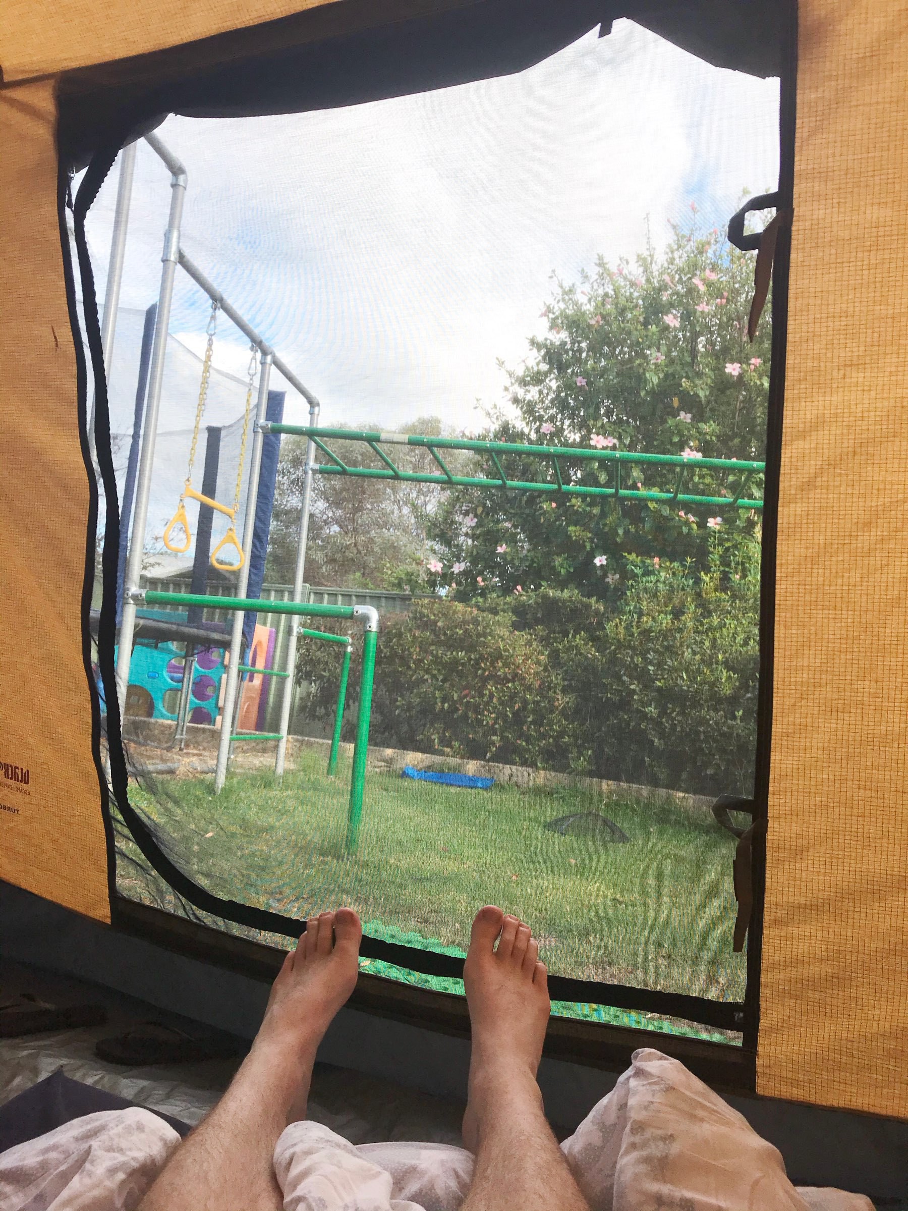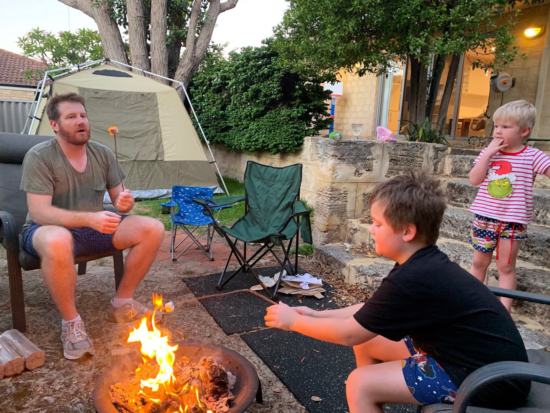 Itβs not Easter without camping. Our COVID-19 response has been to set up in the backyard. David cooks the best marshmallows even though he doesnβt like eating them. So sit near him!