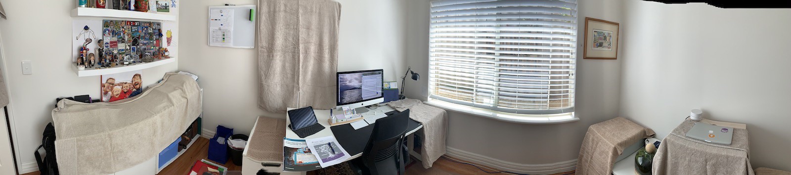 Furniture rearranging day. We converted a bedroom to a kids activity room, reorganised the layout in the study, and created a second home office desk. I’ve surely had my exercise for today.