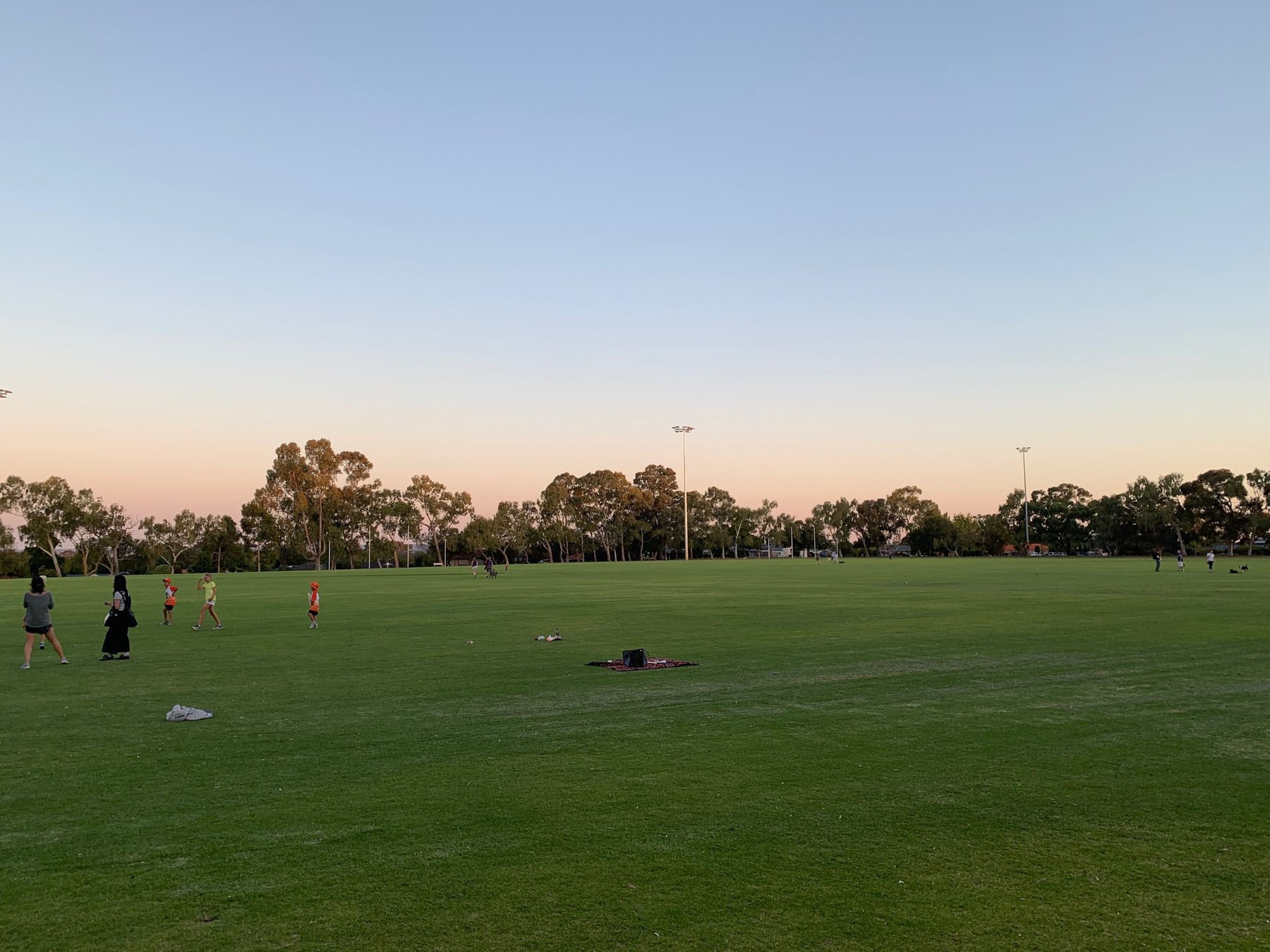Kids cricket is winding down as the sun sets. Yay summer! π